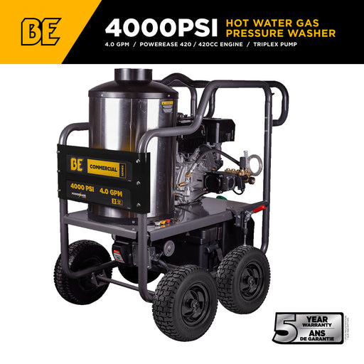 View full detailsBEPowerEquipment 4,000 PSI - 4.0 GPM Hot Water Pressure Washer with Powerease 420 Engine and AR Triplex Pump - HW4015RA