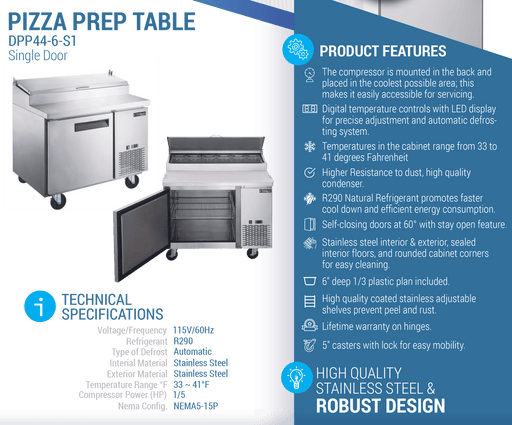 DukersThe Dukers Pizza Prep Station Refrigerator is a high-quality option designed for professional kitchens that prioritize reliability and effectivene...