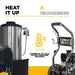 With a robust 7-gallon poly fuel tank and a durable black powder-coated industrial-grade frame, this unit is built to withstand the rigors of any job site. Equipped with advanced safety features such as a high limit switch, pressure relief valve, and thermal relief valve, you can operate with peace of mind.